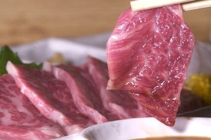 希少な天然霜降り馬刺しです。馬の脂は不飽和脂肪酸のため、胃もたれなどはせず、まろやかな口当たりと馬肉の旨味が感じられます。